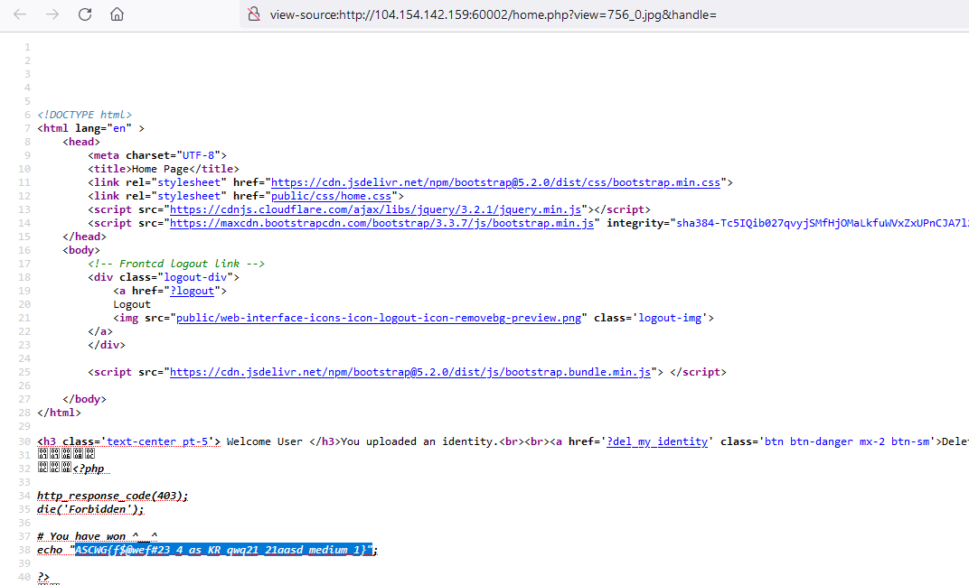 Great! our code have executed let’s get the content of flag.php.