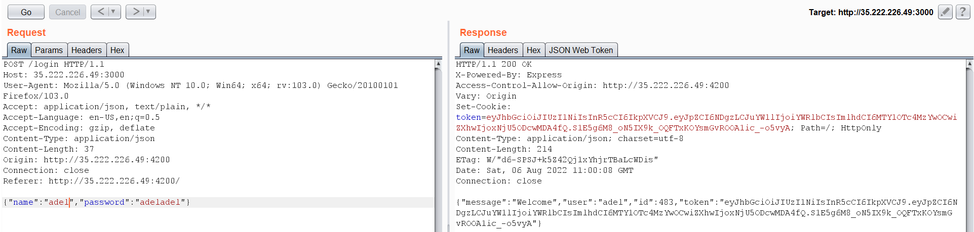 What is interesting here is a JWT token, but I have tried to crack it or change the ID value to 1 but nothing worked. Guess what worked for me, Response Manipulation Again?!! I really didn’t except this to work at all. But when I have changed the ID on the response to 1 I became logged in as admin.