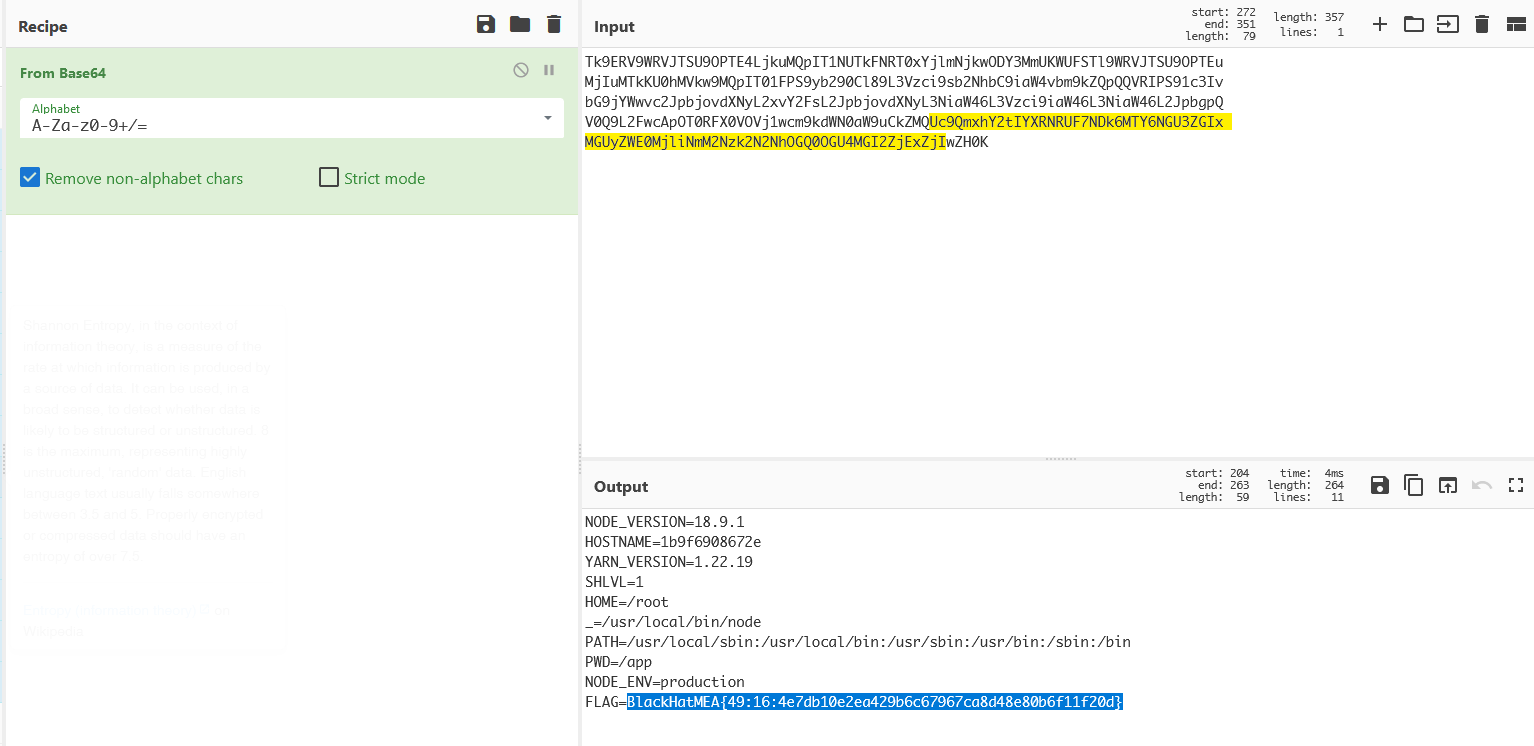 printed in the web page it will be replaced by the previous dummy sentence. let’s get around this behavior by base64 encode the output of the env command.