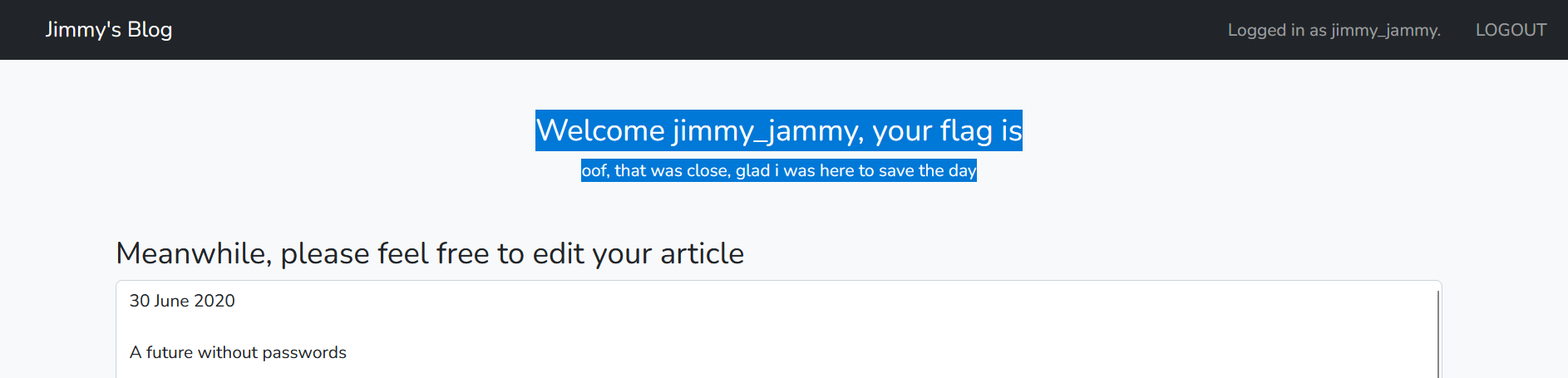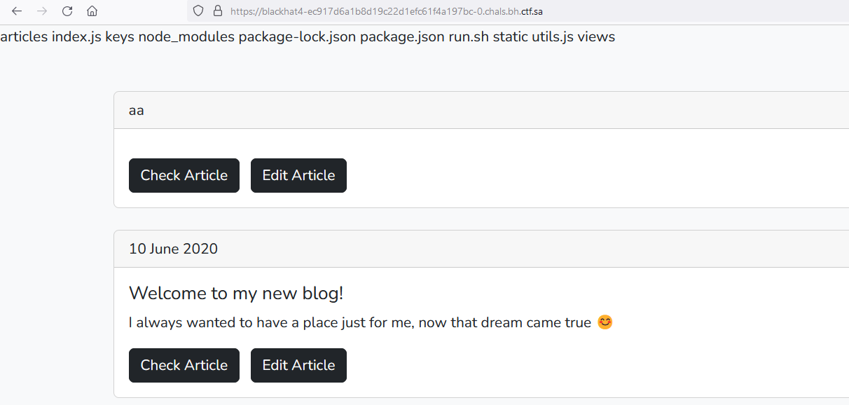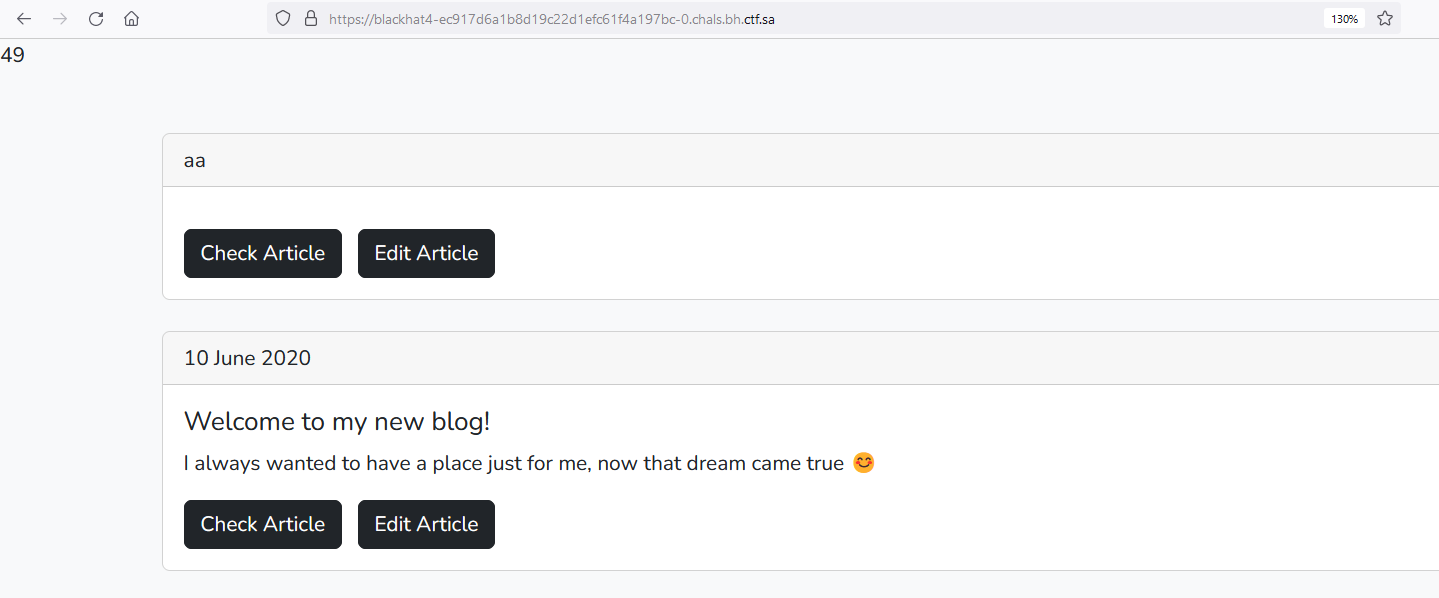 Once logged in, We will get redirected to the main page again with the articles. As we have the source code let’s examine the important parts: