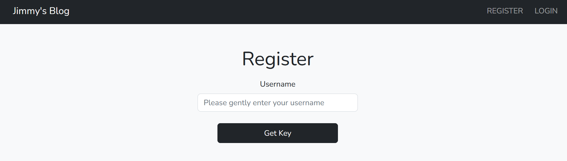 We have a login and registration pages. but instead of implementing a normal username and password. it generate a key attached to your username: