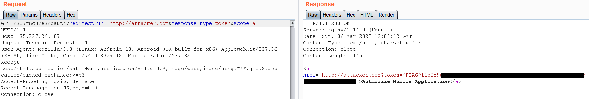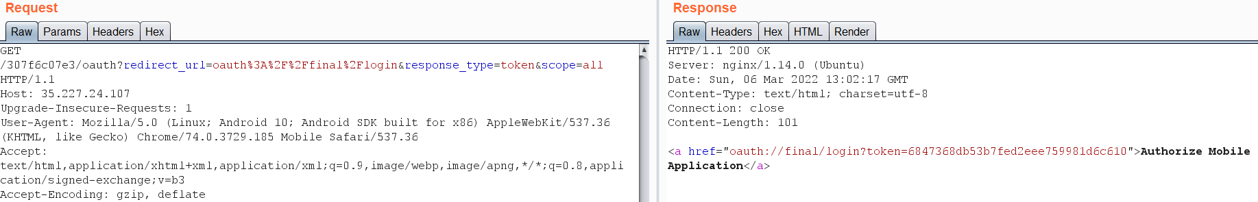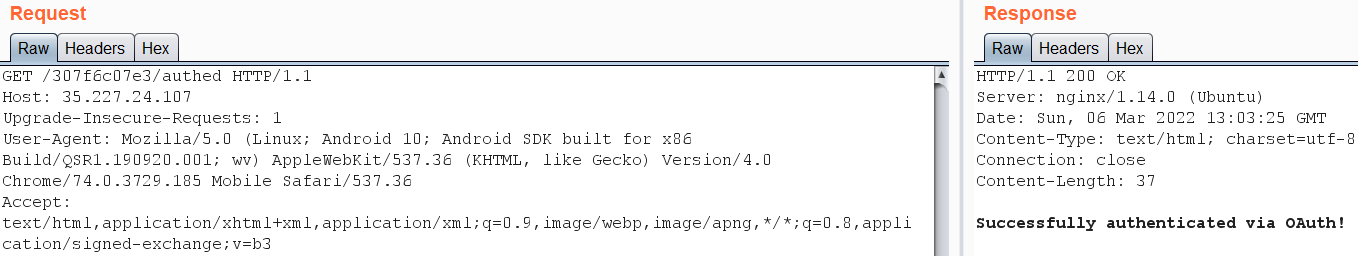Then leveraging the second activity which as we said above isn’t protected and doesn’t contain the exported=false flag which could allow us to access it directly. we will access it via the host final and the scheme oauth:// and adding the uri parameter for redirection. Using the following command: