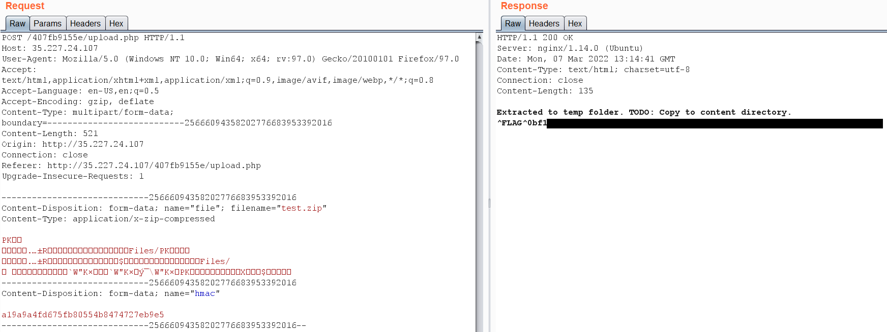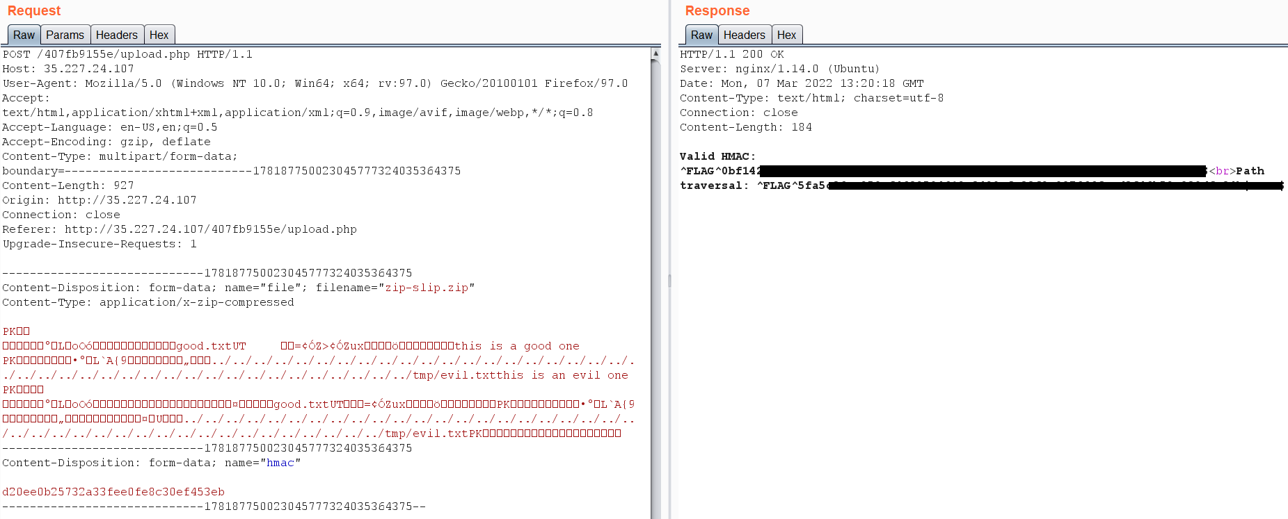 So what else can be exploited? Since this file upload functionality only accepts .zip I think this a hint for a vulnerability called ZIP Slip Attack: