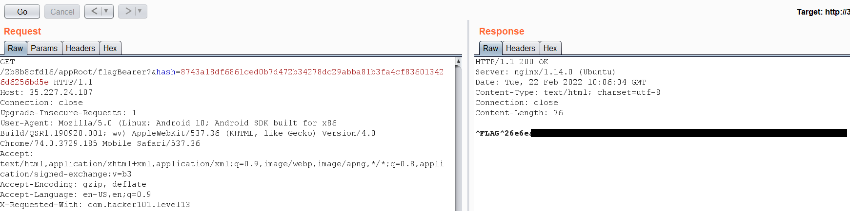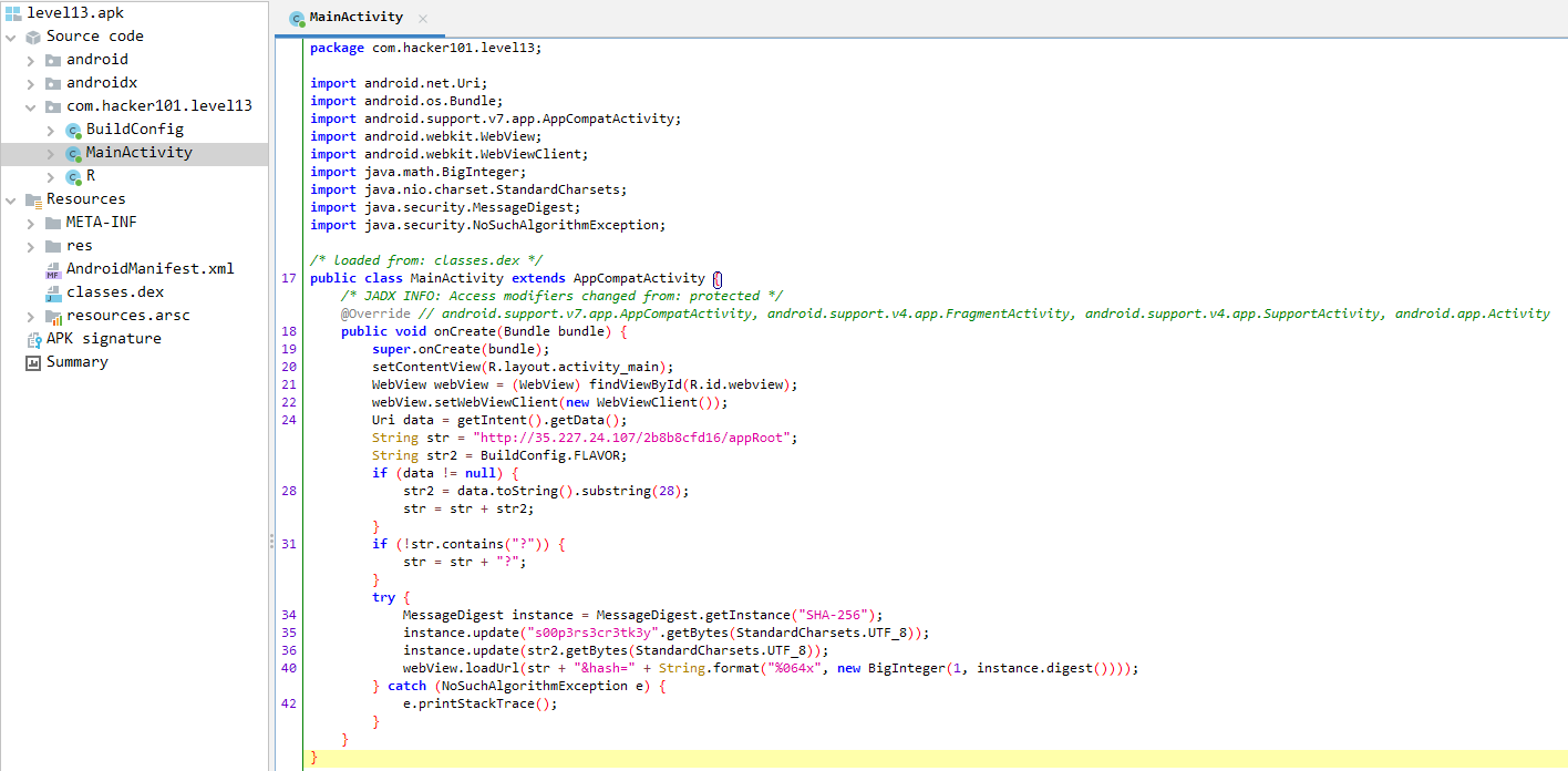 But after clicking the flag link it returns an invalid request. Let’s examine the source code using jadx-gui to see what is happening: